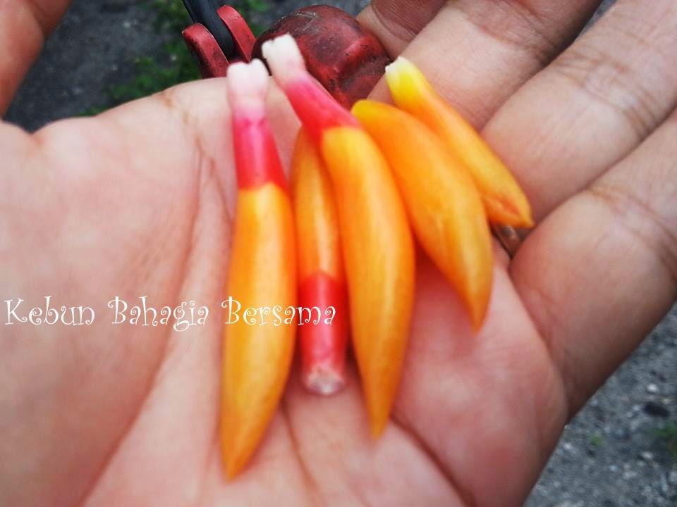 Tuaian dalam gambar no. 1 ialah pada hujung minggu lepas mana tukang kebun terdaya lepas potong rumput. Tangan dan Kaki dah rasa macam jeli berjalan-jalan dengan cepat kutip buah kuini, petik lemon, kuning telor, limau kasturi, belimbing buloh dan cili burung. Teringin nak makan sambal belacan kuini...kui kui kui.