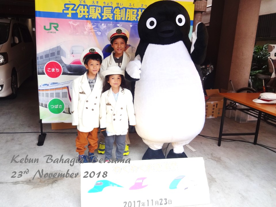 Tempat paling dekat dengan apartment tempat kami menginap di bawah porch rumah orang ada tarikan untuk anak-anak bergaya dengan pakaian seragam station master ala Jepun bersama maskotnya si Penguin ini.